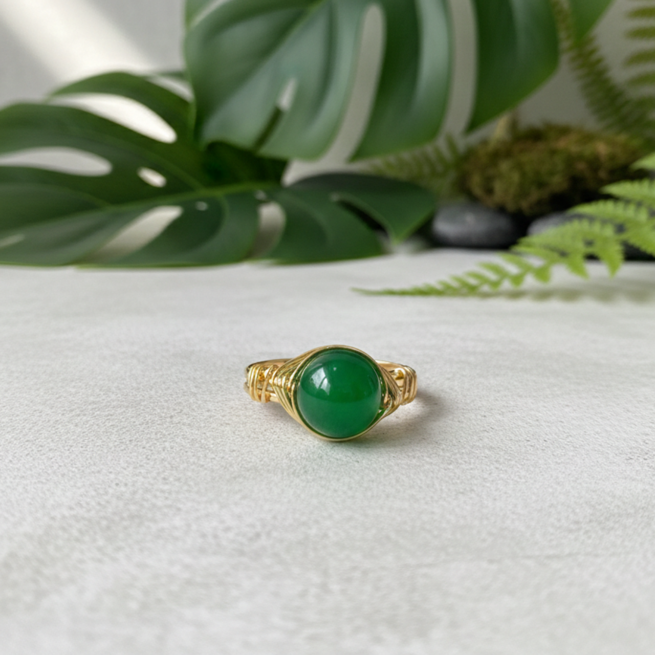 Descubra o Poder do Luxo e Cura com o Luxuoso Anel de Ágata Verde