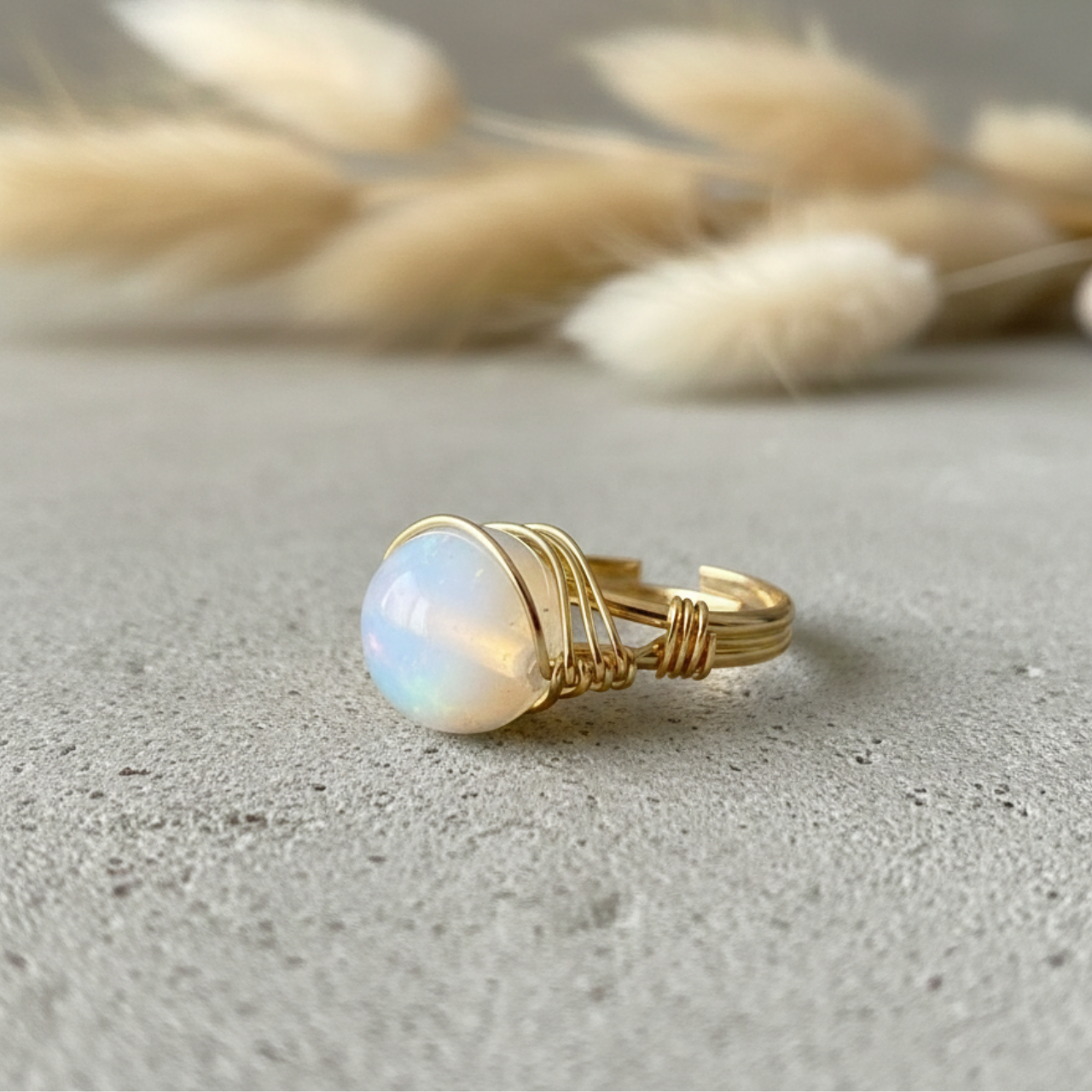 Desperte sua Emoção e Cura com o Luxuoso Anel Ajustável de Opala