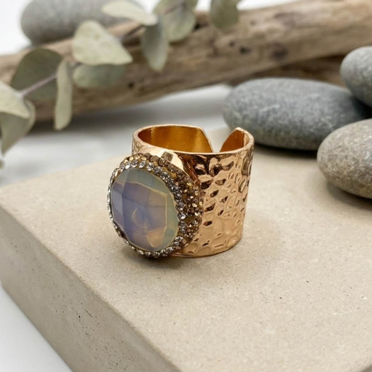 Descubra a Magia do Anel Ajustável de Opala: Elegância e Energia Positiva a Seu Favor!