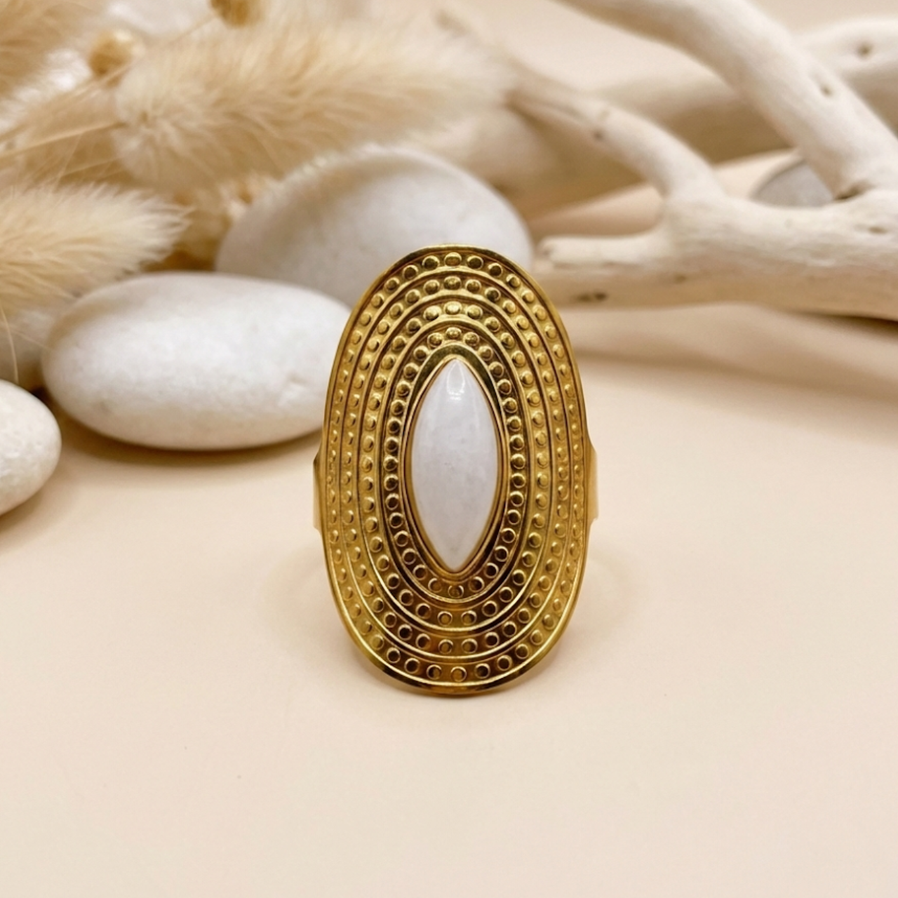 Descubra o Equilíbrio e a Elegância com o Radiante Anel Ajustável de Ágata Branca!